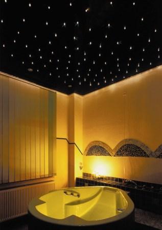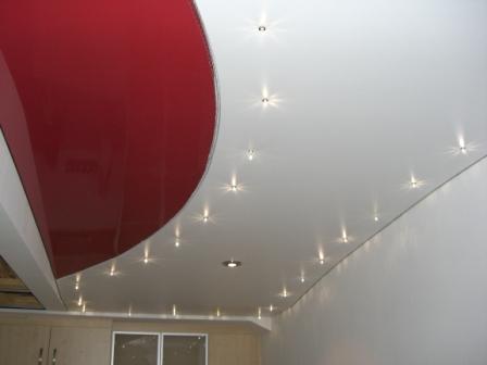 Verschiedene Leuchtquellen und Lampen können in einer Spanndecke eingebaut werden und verleihen einem Raum eine gemütliche Atmosphäre.